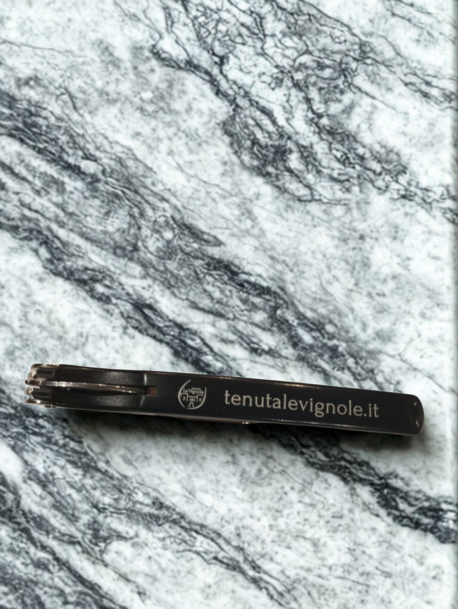 Cavatappi – Tenuta Le Vignole è un accessorio elegante e funzionale, pensato per chi ama aprire le bottiglie con stile. Realizzato con materiali resistenti e un design ergonomico, assicura una presa confortevole e un’apertura fluida del tappo. Perfetto per accompagnare degustazioni e momenti speciali, è l’accessorio ideale per appassionati e professionisti del vino.