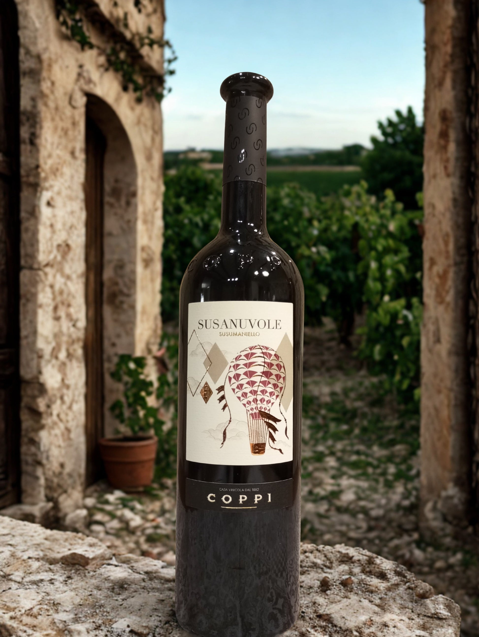 Susanuvole – Coppi è un rosso rubino intenso selezionato da Invictus: profumi fruttati e speziati, gusto secco e morbido con tannini eleganti e finale balsamico.